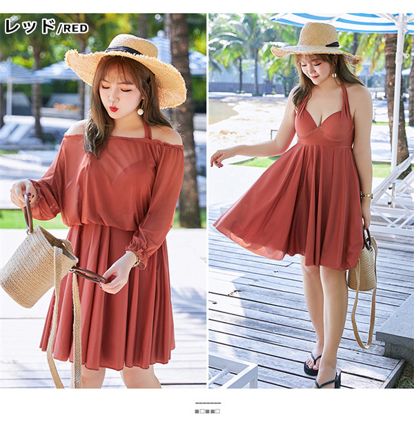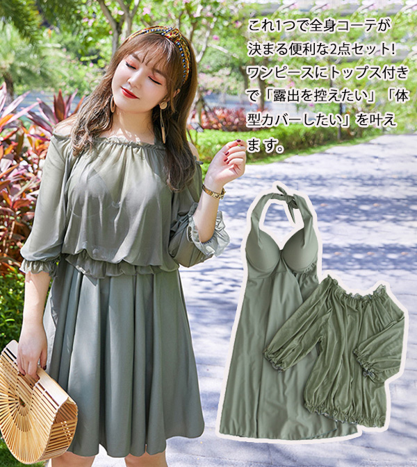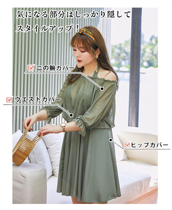 水着 大きいサイズ体型カバー 服みたいな レディース ワンピース オトナ女子 温泉 かわいい ぽっちゃり ショートパンツ グリーン 大人 ママ 20代 30代 40代 50代 露出控えめ 服みたいな水着 カバーアップ セクシー 女性