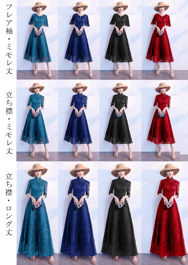 タイプ:半袖・ミモレ丈/五分袖・ミモレ丈/五分袖・ロング丈/フレア袖・ミモレ丈/立ち襟・ミモレ丈/立ち襟・ロング丈
