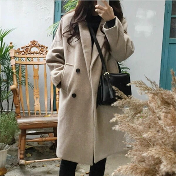 チェスターコート レディース 大きいサイズ 冬春兼用アウター ステンカラー ロング丈 中綿入り ラグランスリーブ 暖か カジュアル シンプル 韓国風 ブラック/ベージュ S~3L