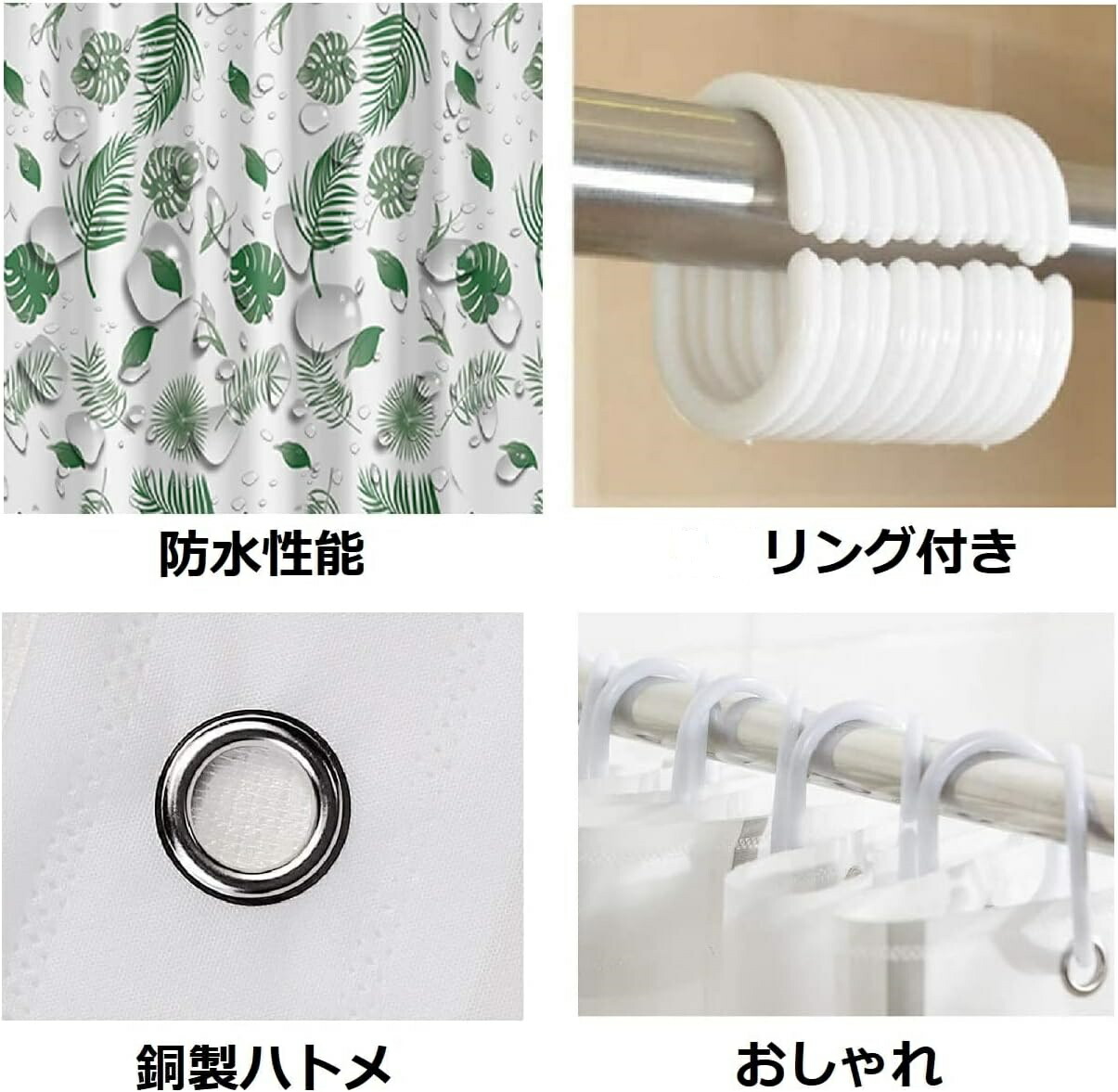 シャワーカーテンの上部にある銅製ハトメは、錆びにくくて長持ちできる、パッケージ内にC字型のプラスチックフック付き、簡単に取り付けられます。
