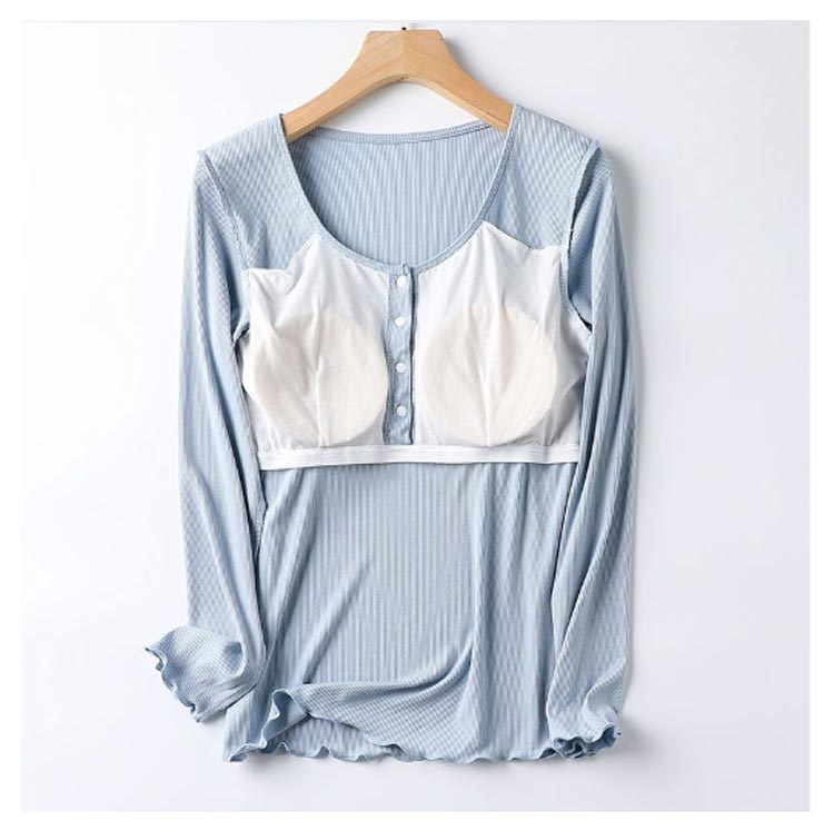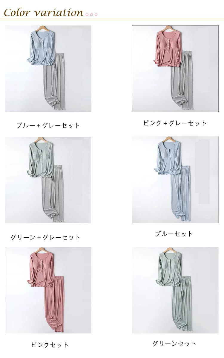 授乳パジャマ マタニティ パジャマ マタニティウエア 上下セット パッド付き 長袖 長ズボン カップ付き マタニティウェア 授乳服 ボタン 前開き 便利 大きいサイズ ルームウェア 部屋着 セットアップ