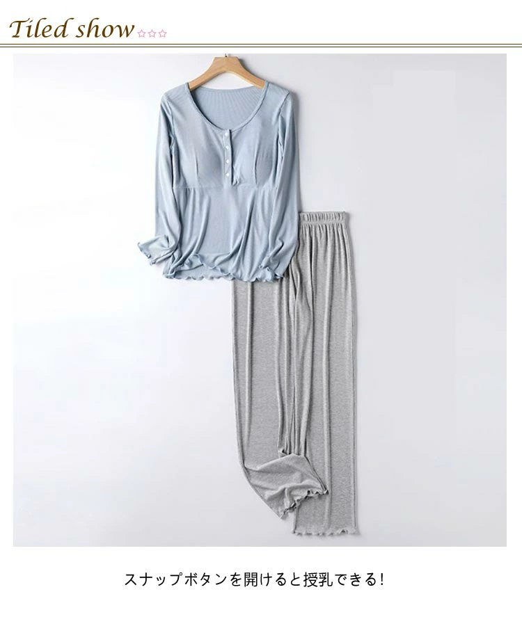 スナップボタンを開けると授乳できる!授乳便利なマタニティパジャマ上下セット