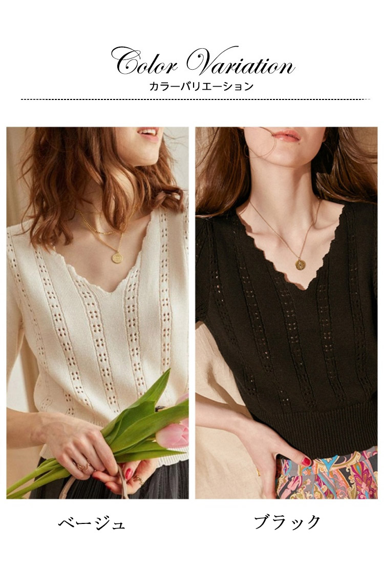 ニット カットソー 透かし編み 半袖 レディースファッション 豊富 ベージュ ブラック