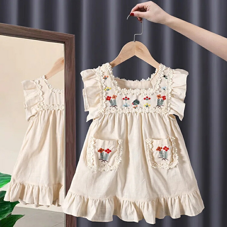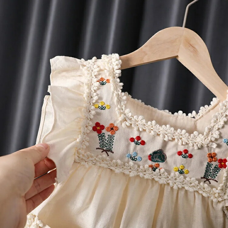 ワンピース 春 女の子 キッズ ノースリーブ ワンピース春 夏 かわいい 刺繡 花柄 森ガール キッズ女児 ベビー 子供服 春服 夏服 結婚式 カジュアル 80 発表会