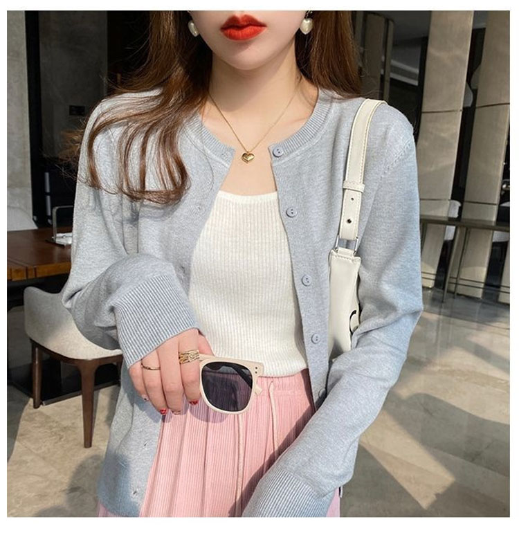 この夏にぴったりの軽やかな羽織りとして、サマーニットカーディガンがおすすめです。シンプルで洗練されたデザインのこのカーディガンは、オフィスや通勤にも最適。薄手のニット素材は、暑い季節でも快適に過ごせるよう工夫されており、冷房対策としても活躍します。丸首のグランドネックデザインが、どんなトップスとも相性が良く、スタイリングの幅を広げてくれます。