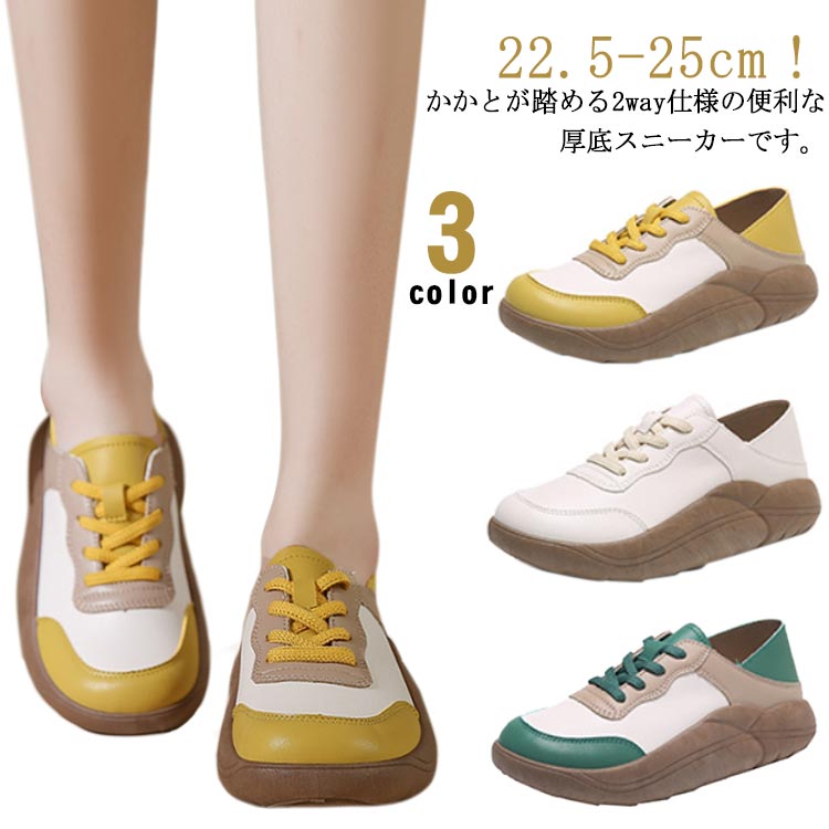 レディース 2way シューズ スニー レディース靴 スニーカー 特集 ホワイト イエロー グリーン 35(22.5cm) 36(23cm) 37(23.5cm) 38(24cm) 39(24.5cm) 40(25cm)