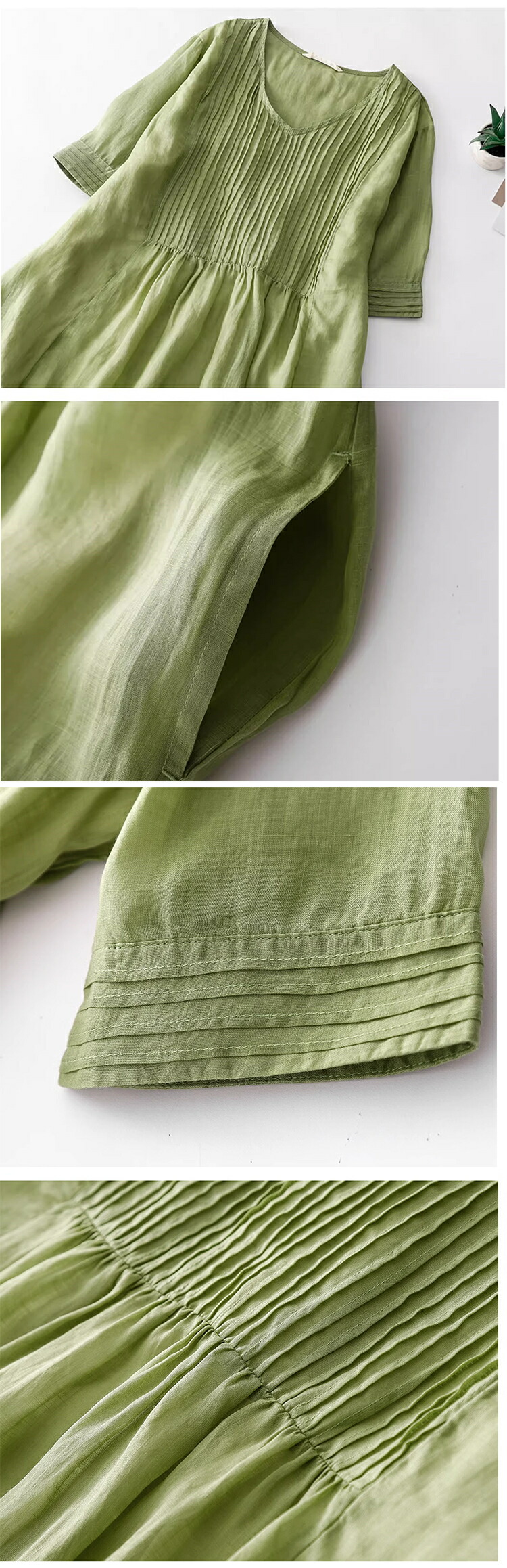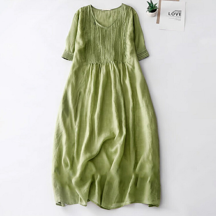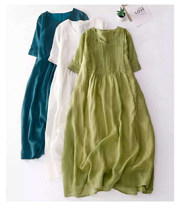綿麻ワンピ ワンピース ミドル丈ワンピース 半袖 レディース 女性 学生 大人 きれい シンプル ファッション おしゃれ プレゼント 誕生日 ギフト 通勤 オフェンス OL 通気 薄手 着 お出かけ