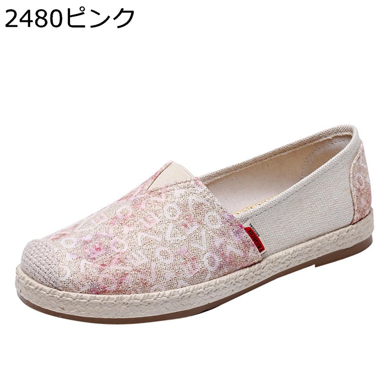 レディース スリッポン 花柄 英字柄 23.0 cm 23.5 cm 24.0 cm 24.5 cm 25.0 cm 25.5 cm 2480ピンク 2480カーキ色 2480グリーン