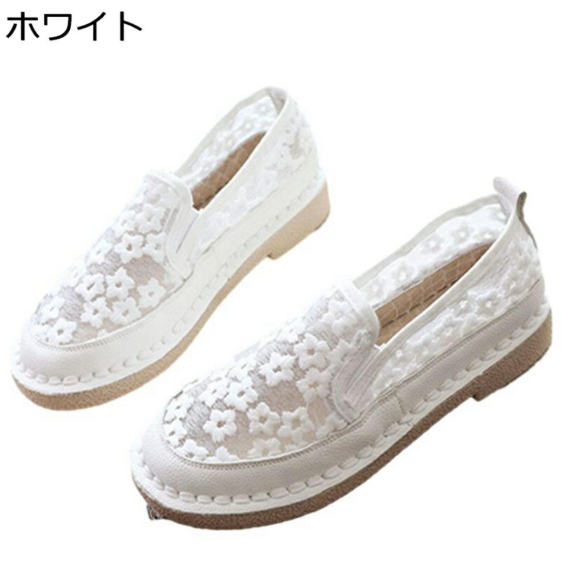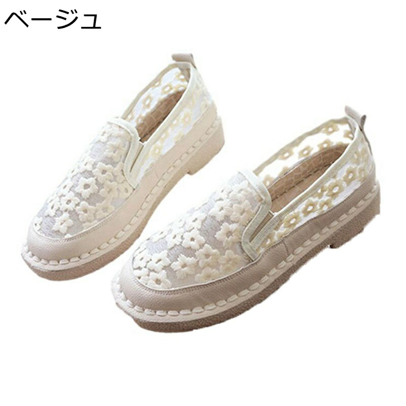ローファー レディース レース 花柄 22.5 cm 23.0 cm 23.5 cm 24.0 cm 24.5 cm 25.0 cm ホワイト ベージュ ライトブルー