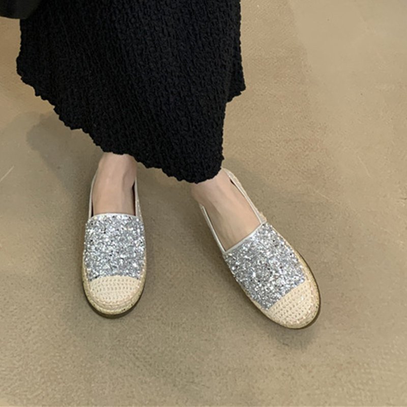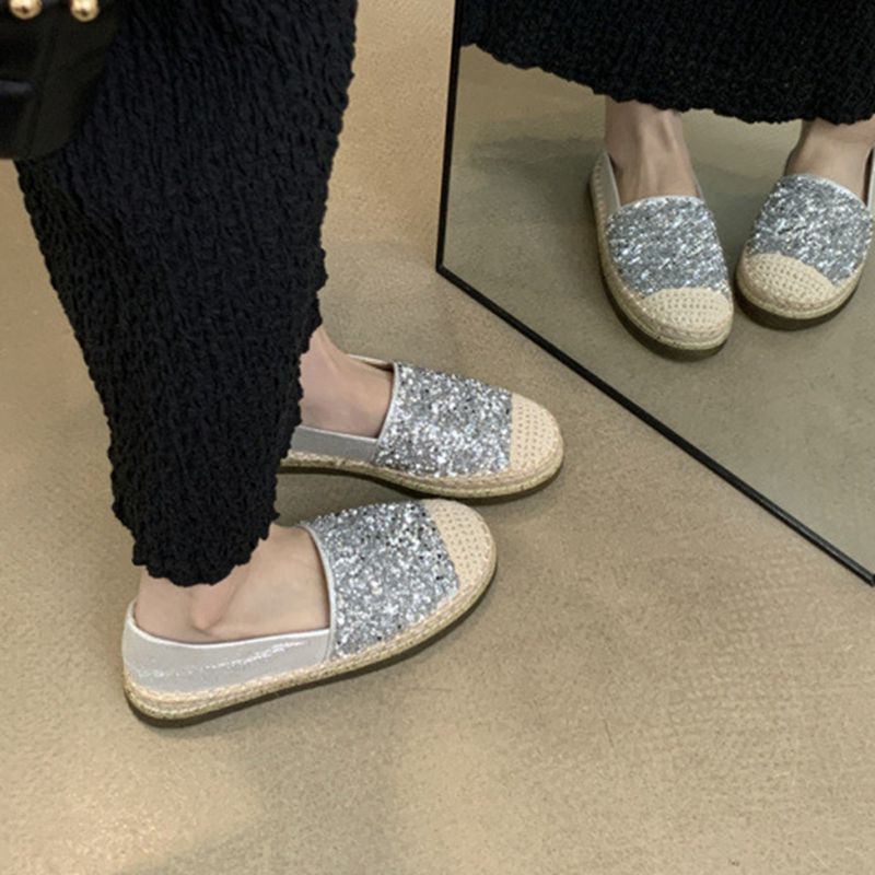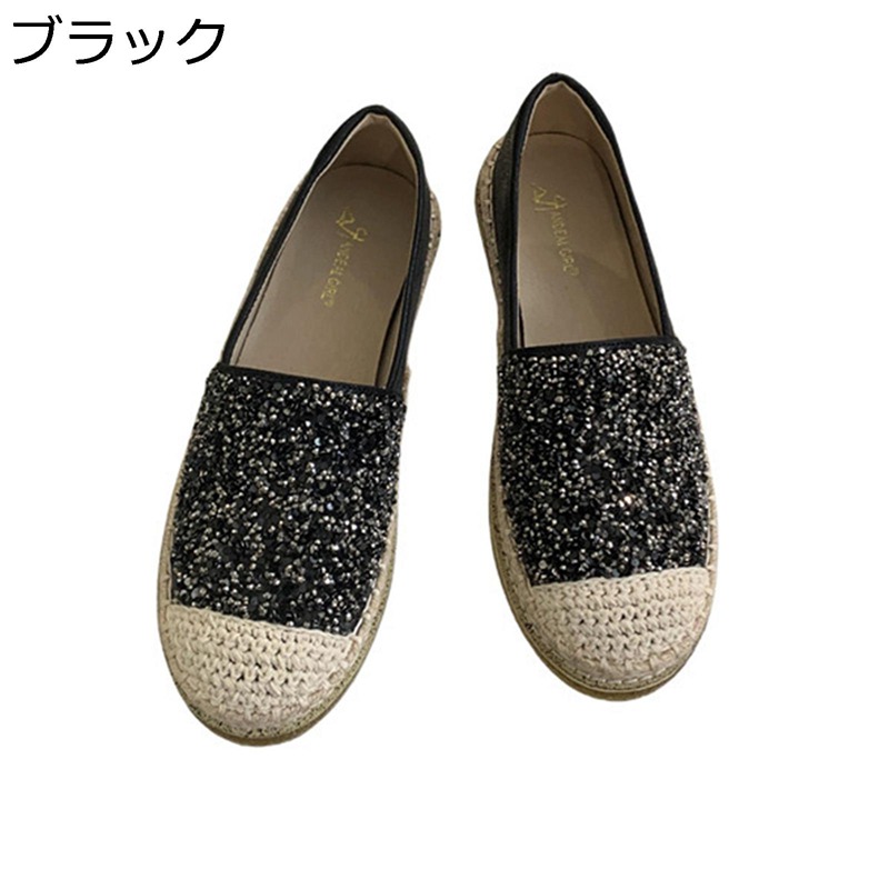レディース スリッポン 春夏 エスパド 22.5 cm 23.0 cm 23.5 cm 24.0 cm 24.5 cm 25.0 cm シルバー ブラック
