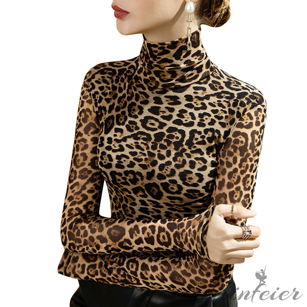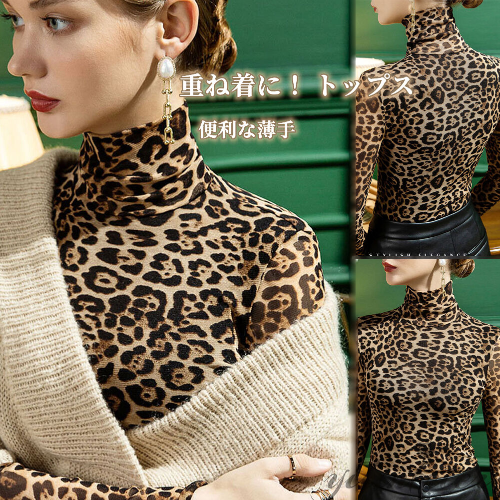 レディース トップス ハイネック豹柄 レディースファッション 特集 S M L XL 2XL 3XL