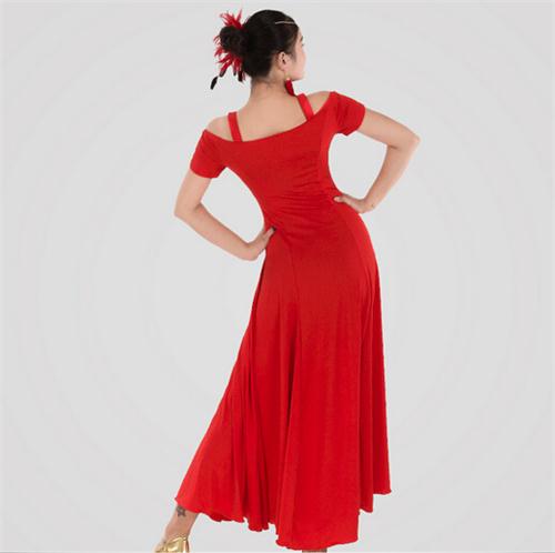 社交ダンスドレス 社交ダンス衣装 上品 ワンピース モダン 初心者 練習着 ウェア 体型 女性 デモ 練習用セット演出スーツ ロングドレス 練習競技着デモ用 発表会用 演出服 赤 ローズ パ ステージ