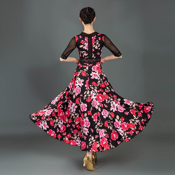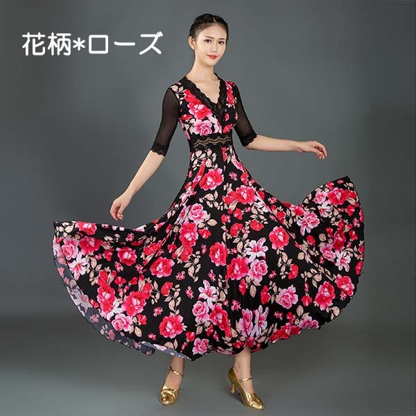 社交ダンス ドレス 社交ダンス衣装 ワ レディースファッション 新登場! S M L 2L(XL) 3L(2XL) 花柄*ローズ 花柄*ピンク レッド ビリジアン ブラック ブルー ミントグリーン ローズ