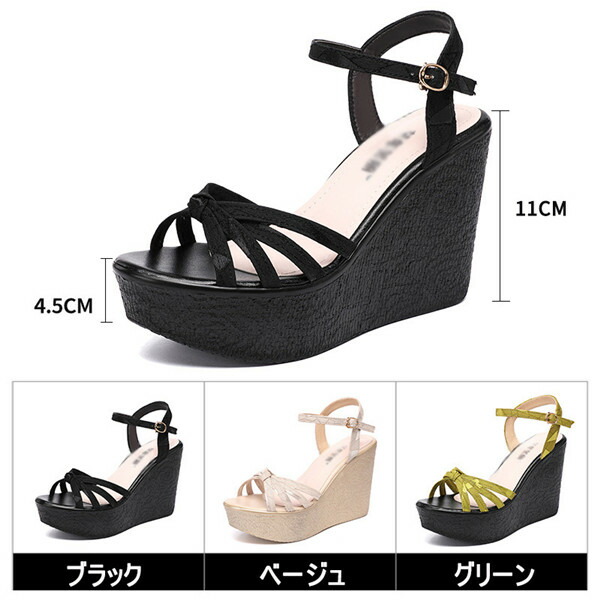 厚底サンダル レディース ウエッジソー 靴 豊富な品揃え ブラック ベージュ グリーン 21.0 21.5 22.0 22.5 23.0 23.5 24.0 24.5 25.0 25.5 26.0 26.5