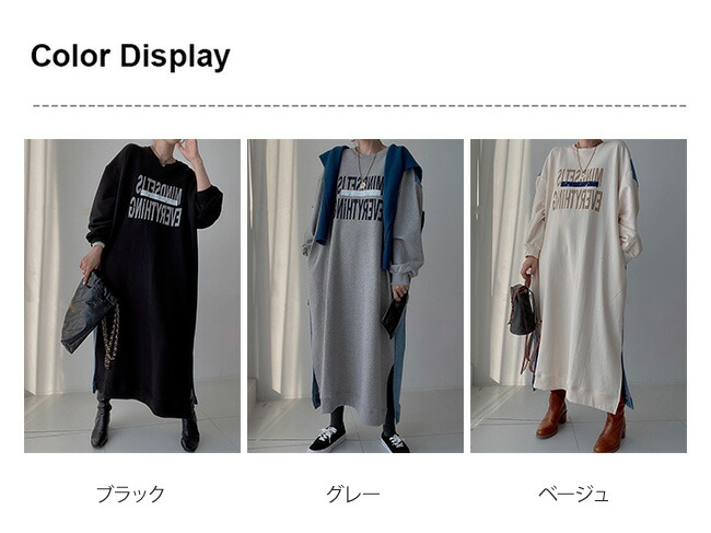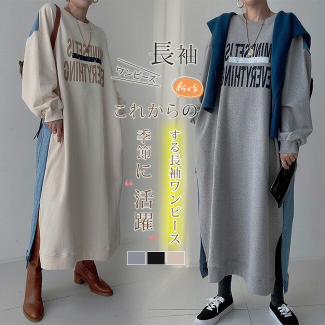 スウェットワンピース レディース 長袖 レディースファッション 続々登場 ブラック グレー ベージュ