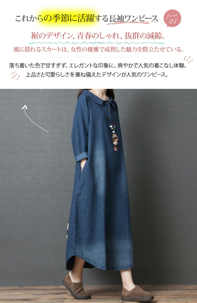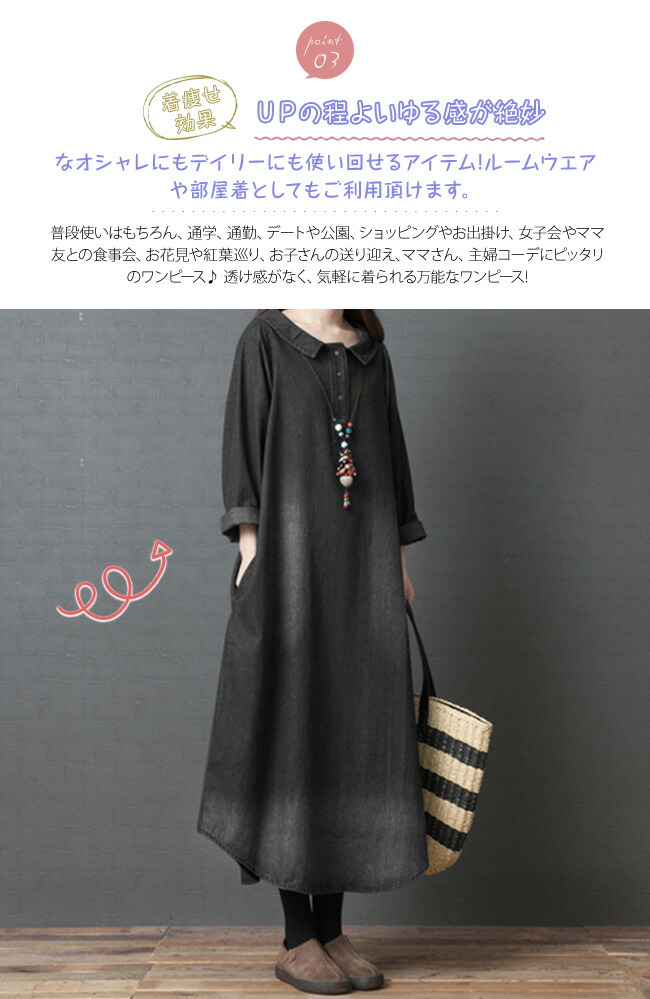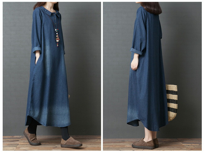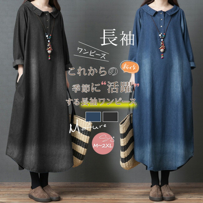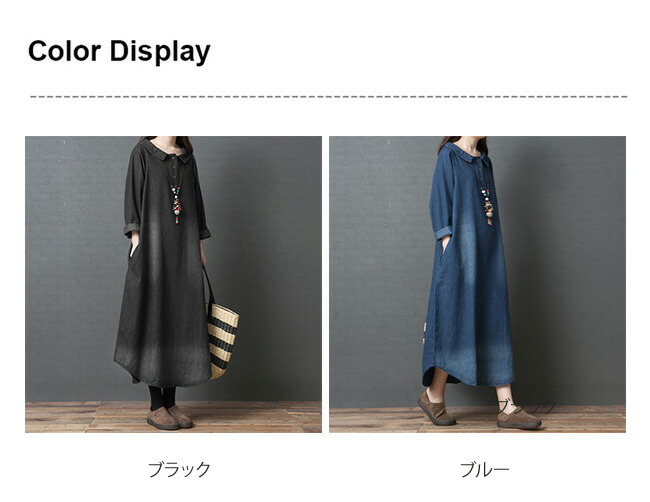デニム ロングワンピース レディース ワンピース 続々登場 ブラック ブルー M L XL XXL