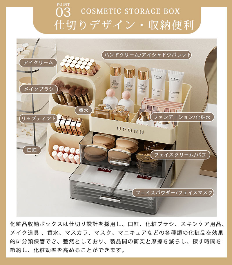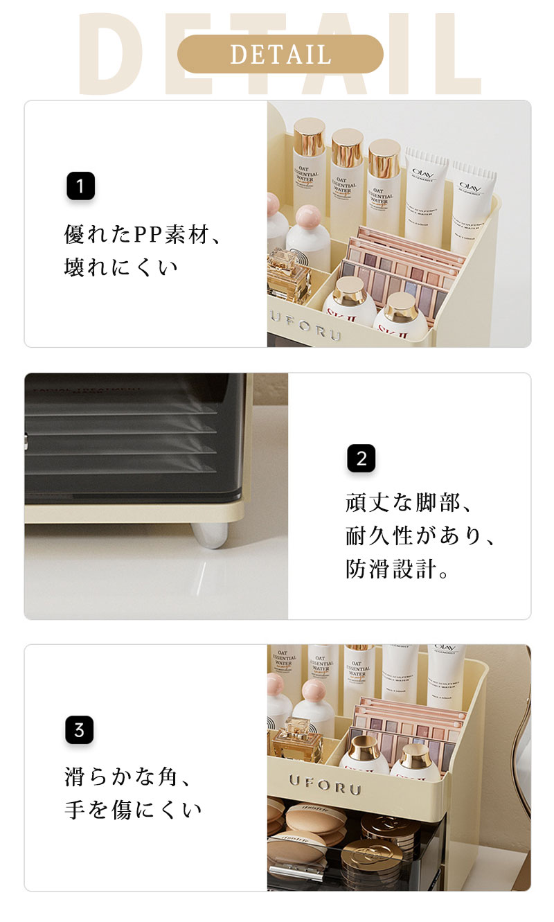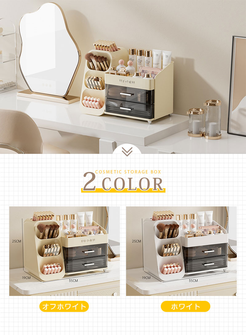 化粧品収納ボックス 化粧品収納ラック オフホワイト ホワイト
