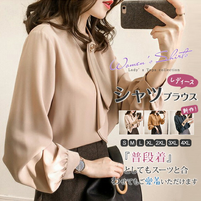 ブラウス レディース トップス サテン トップス シャツ ブラウス 超目玉商品 イエロー グリーン ベージュ M L XL XXL 3XL 4XL