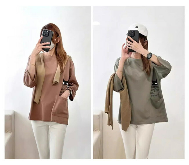 新作 長袖Tシャツ レディース トレー トップス Tシャツ カットソー 特集 ブラック カーキ オレンジ グリーン