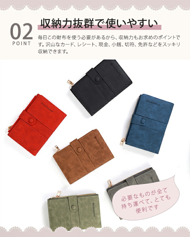 二つ折り財布 レディース 軽量 大容量 バッグ 小物 ブランド雑貨 超目玉商品 ピンク ブラック グリーン ブラウン レッド グレー ブルー