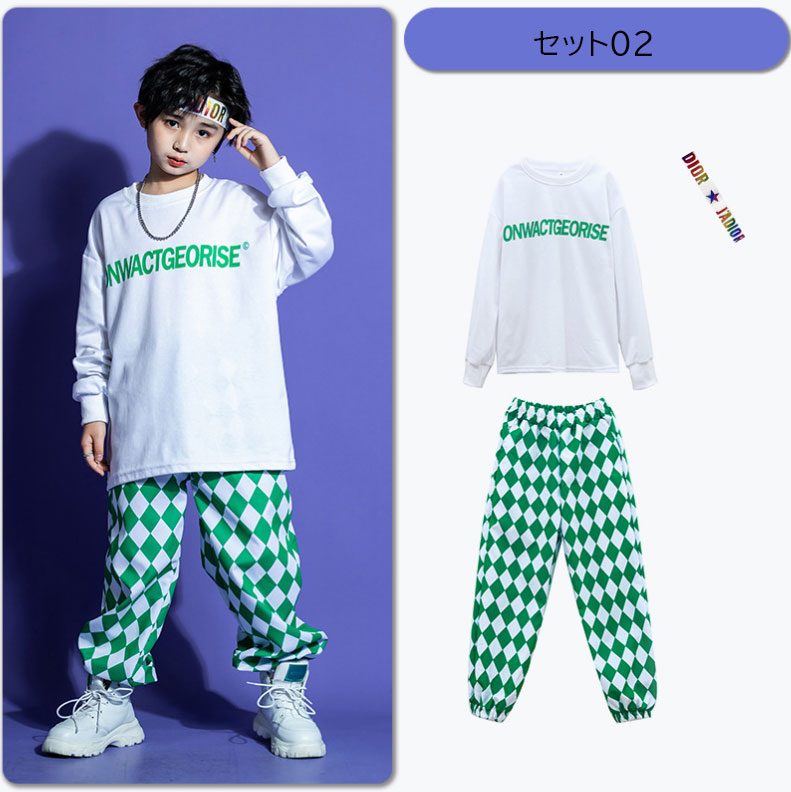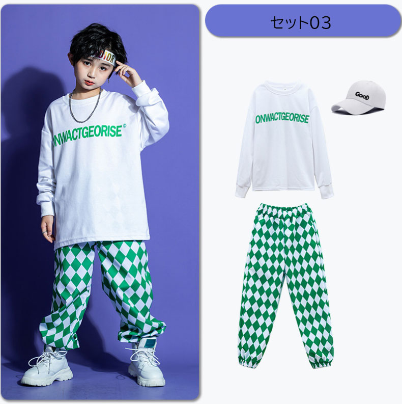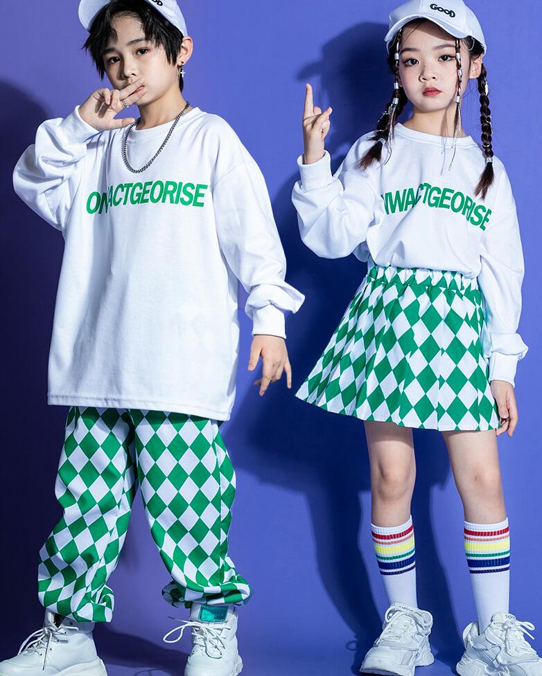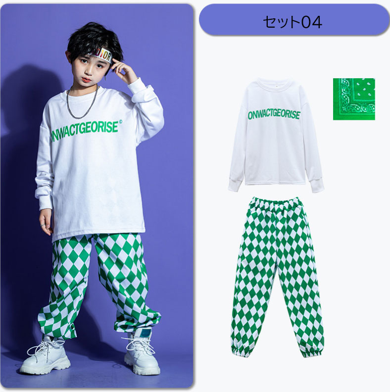 キッズダンス衣装 オーバーサイズパーカー サルエルパンツ チェック柄 男女兼用 キッズジャズ ヒップホップ 子供服 上下セット 派手 K-POP