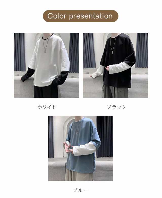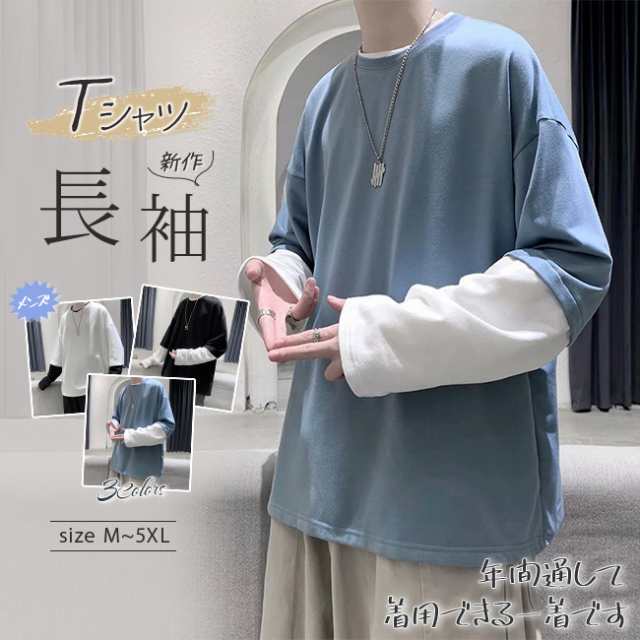 長袖Tシャツ メンズ tシャツ長袖 大きいサイズ 重ね着風 レイヤード 無地 ゆったり 柔らか ビッグシルエット コットン 肌着 トップス カジュアル