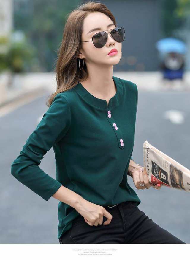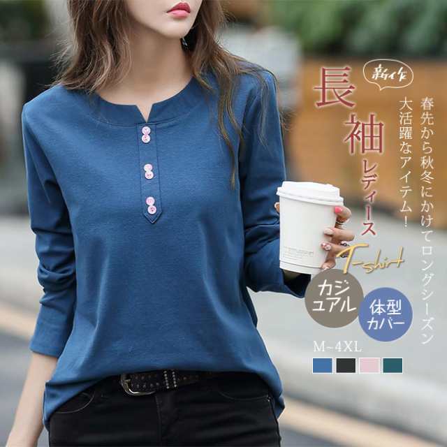 春新作 長袖tシャツ レディース tシ レディースファッション 人気 ブラック ブルー グリーン ピンク M L XL XXL 3XL 4XL