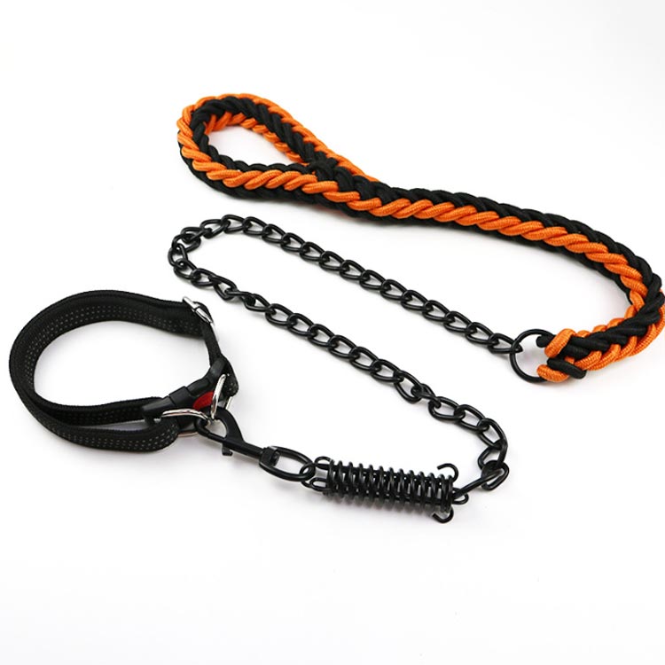 ゴツイ ばね チェーン ブラックチェーン 小型犬 噛み癖 鎖 犬用 犬 超大型犬 おしゃれ 首輪 持ち易い 散歩 しつけ 訓練 オレンジ