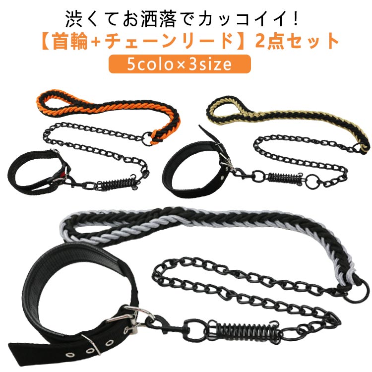 【セット内容】首輪*1+引きひも*1S:素材直径3mm 長さ130cmM:素材直径3.5mm 長さ130cmL:素材直径4mm 長さ130cmXL:素材直径4.5mm 長さ130cm※商品のサイズは手作業で測定させて頂いておりますので、若干の誤差があります。※持ち手部分の長さ・太さは全サイズ共通です。チェーン部分の素材の直径とフックが異なります。メーカーの適応体重の公表はこさいません。目安として、S:小型中型犬、M:大型犬、L/XL:超大型犬くらいです。