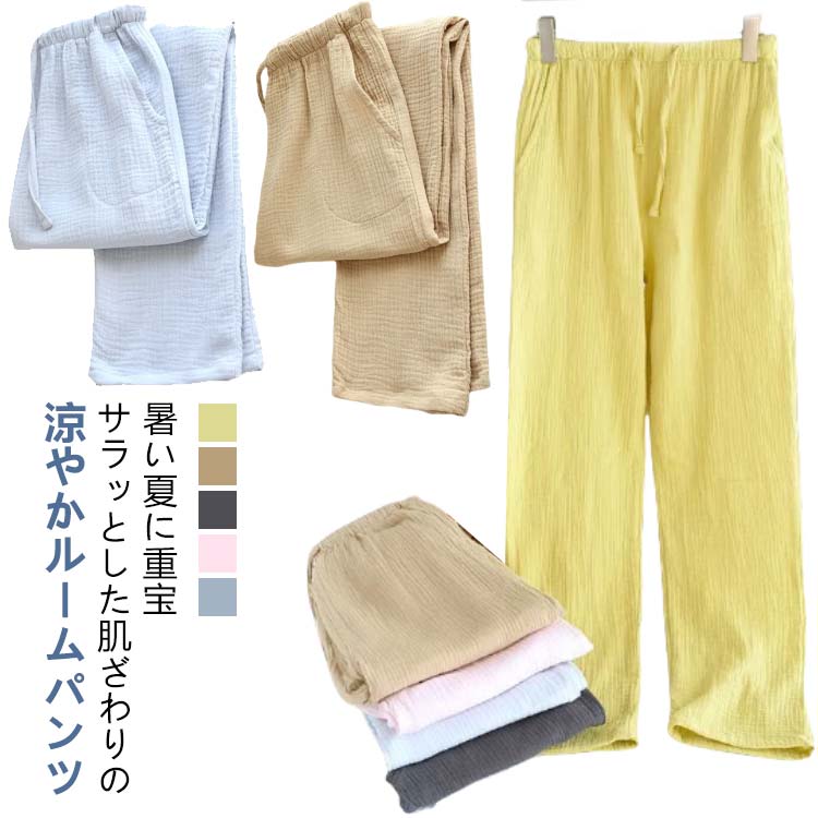 春夏 ルームパンツ 綿 レディース ダ インナー 下着 ナイトウエア 豊富 イエロー ベージュ グレー ピンク ブルー M L XL