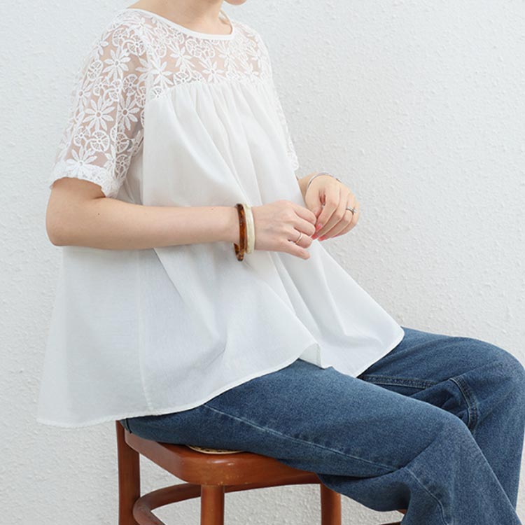 異素材切り替えデザインでレース柄が着映えし、デイリー使いにもオフィスカジュアルにもオススメ◎