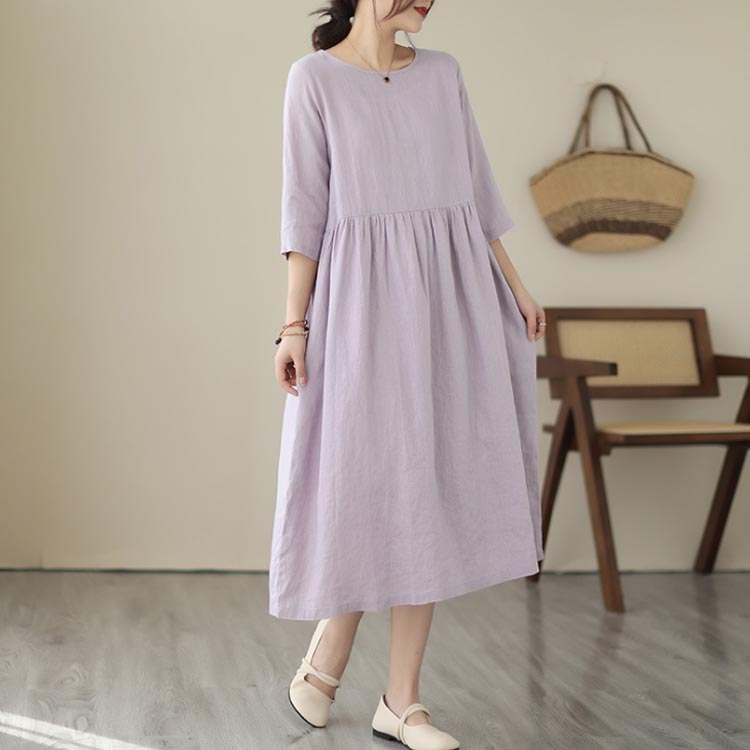 五分袖 マキシ丈 ワンピース 半袖 レディース ロングワンピース 綿麻混 5分袖 夏 体型カバー 大きいサイズ ポケット付き 大人 マキシワンピース ゆったり 40代 Aライン 50代 綿麻 30代