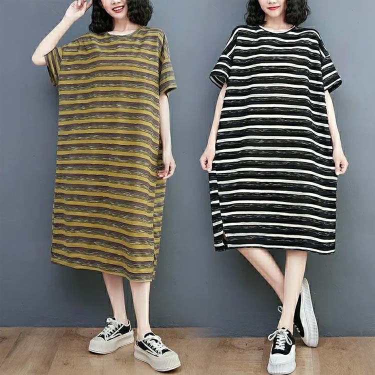 レディース 体型カバー 膝下 Tシャツ ワンピース 続々登場 カーキ ブラック L XL 2XL 3XL 4XL 5XL