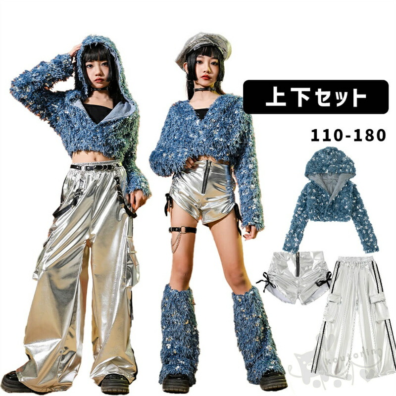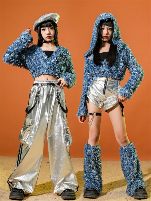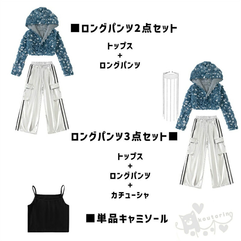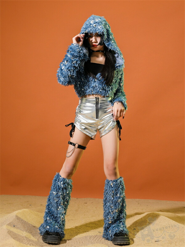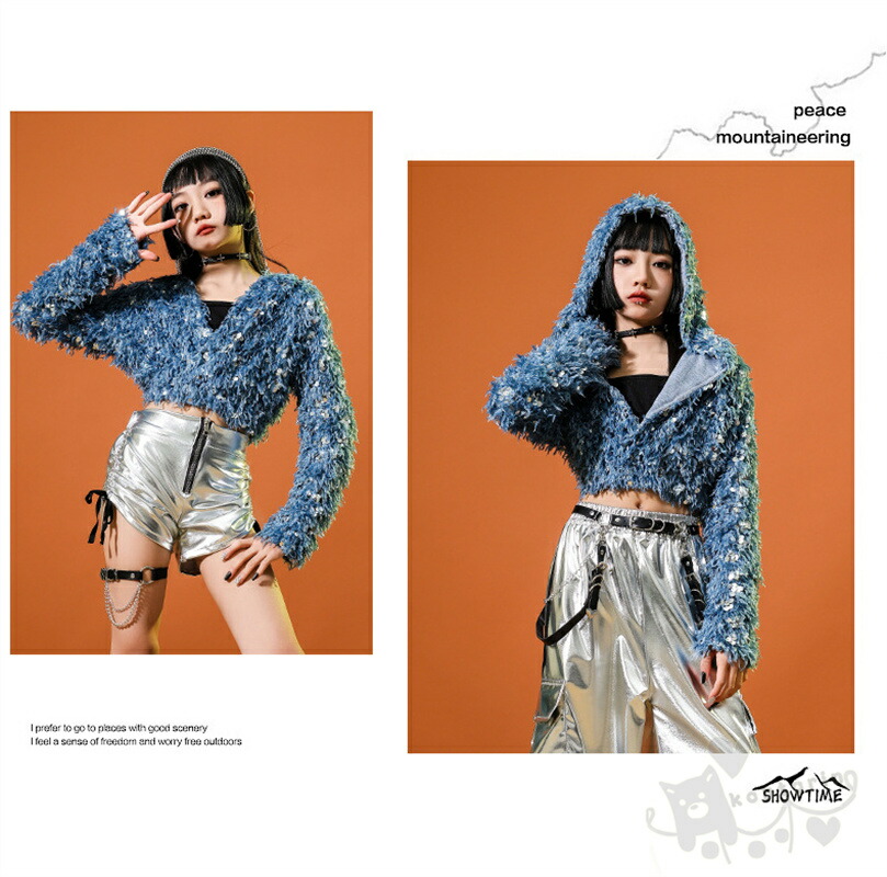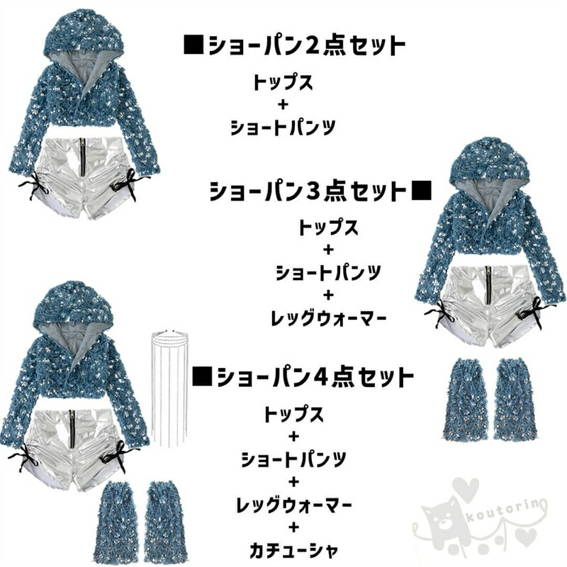 ブルー スパンコール 長袖 ショートパ