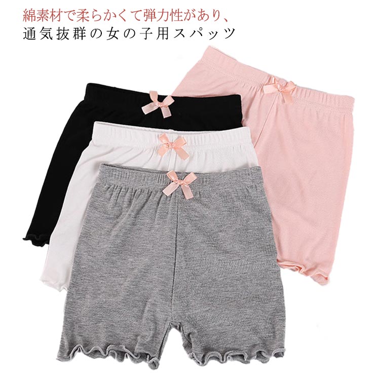 2枚入り スパッツ キッズ 3分丈 綿 女の子スパッツ 夏 女の子 オーバーパンツ 子供 下着 インナーウエア 女子服 ジュニア ショーツ かわいい リボン こどもファッション