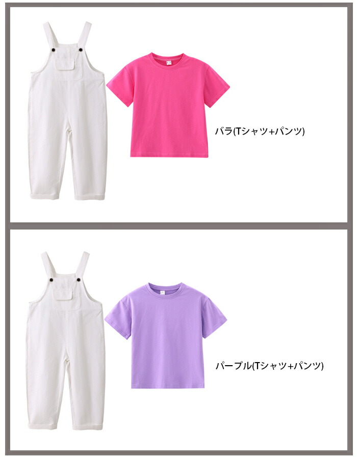 カラー: オーバーオール単品 イエロー(Tシャツ+パンツ) ダークブルー(Tシャツ+パンツ) グリーン(Tシャツ+パンツ) ピンク(Tシャツ+パンツ) ライトブルー(Tシャツ+パンツ) レッド(Tシャツ+パンツ) バラ(Tシャツ+パンツ) パープル(Tシャツ+パンツ) オレンジ (Tシャツ+パンツ)
