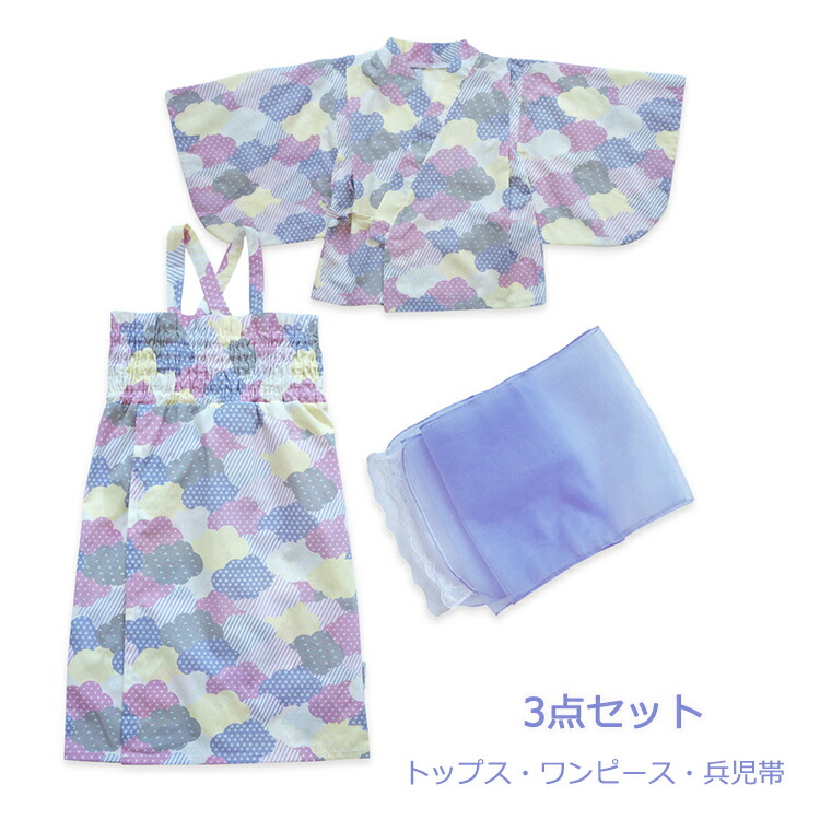 手測りなので、1-3cmの誤差があるかもしれません。ご了承ください。素材 綿+ポリエステル生産国 中国カラー 写真通りセット内容 3点セット:トップス+キャミワンピース+兵児帯注意 PC環境・光の具合により、色や素材のイメージが写真と若干異なる場合がございます。