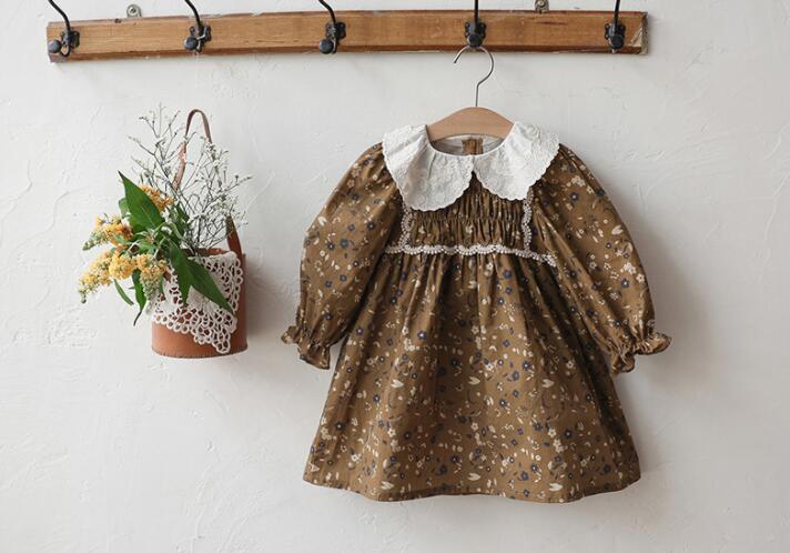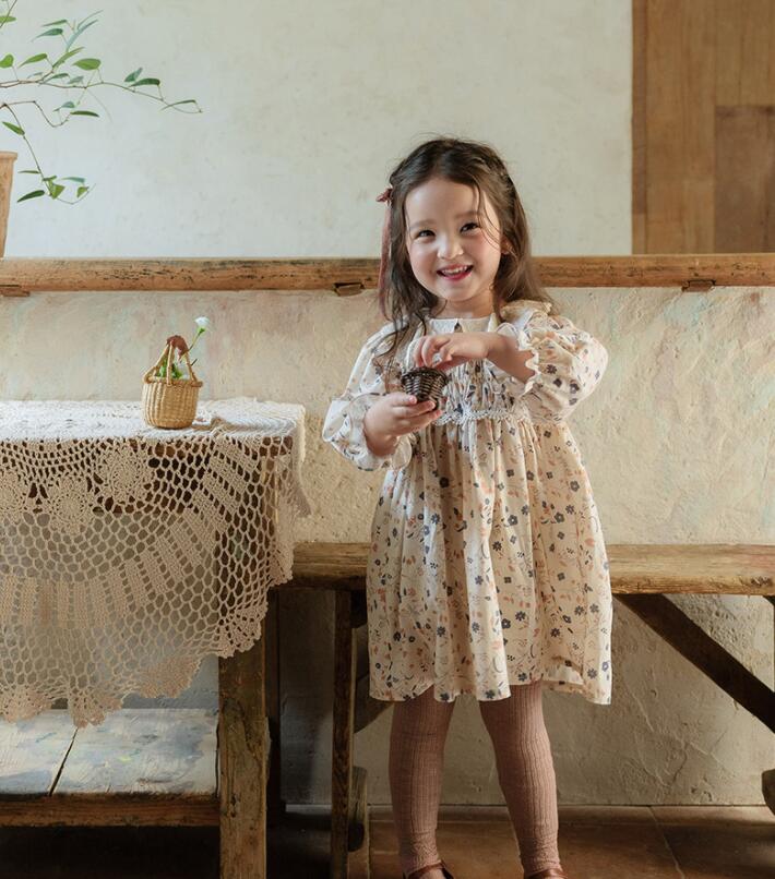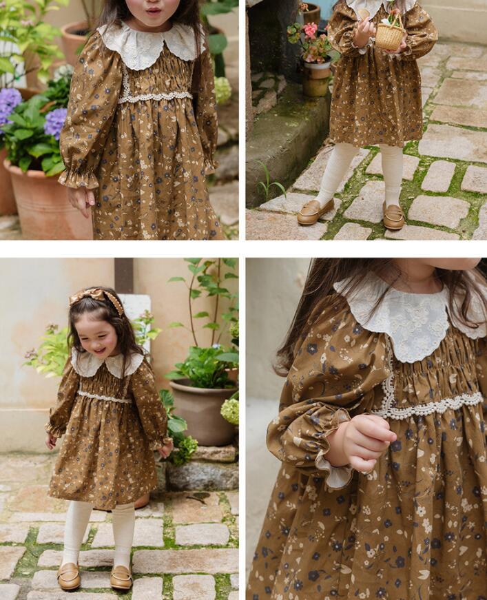 花柄ワンピース 襟付きキッズ ベビーワンピース 長袖 女の子 子供服 こども服 ドレス 秋 冬 春 100cm 110cm120cm130cm140cm150cm通園 通学