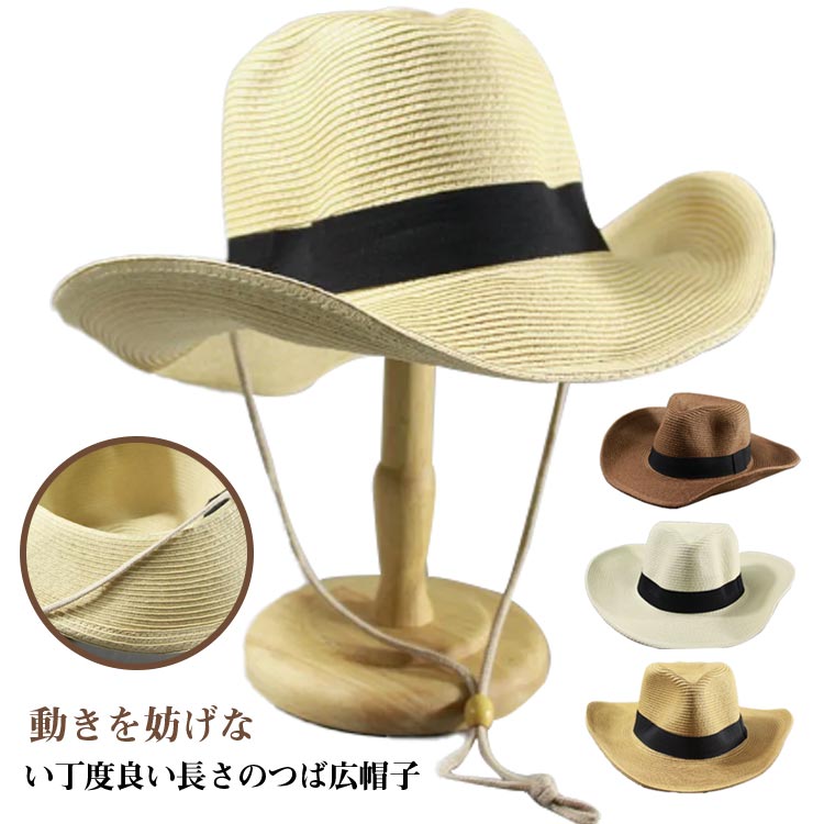 選べる3サイズ メンズ 麦わら帽子 あご紐付き 紫外線対策 蒸れない