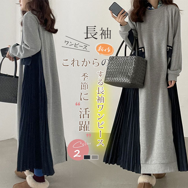 2点セット ドッキングワンピース レディース 秋冬 ロングワンピース プリーツワンピース