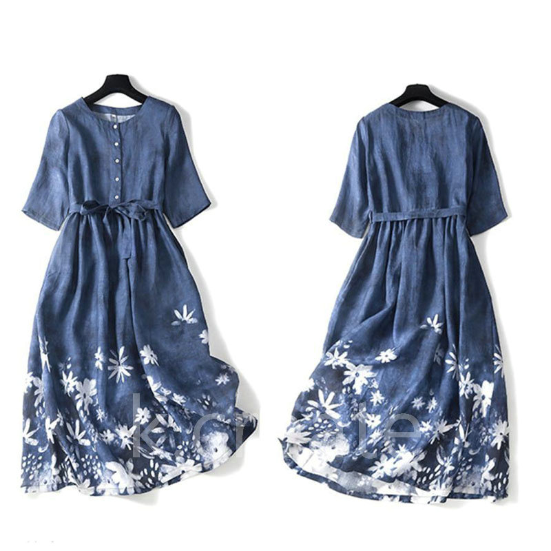 リネン風 シャツ ワンピース ワンピ 半袖 ウエストリボン 2way マキシ丈レディースファッション ワンピース