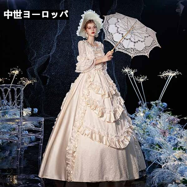 貴婦人 貴族 ドレス 中世ヨーロッパ お姫様 女王様ドレス ロングドレス カラードレス 豪華なドレス ステージ衣装 舞台衣装 王族服 プリンセスライン オペラ声楽 学園祭 文化祭 パーティー
