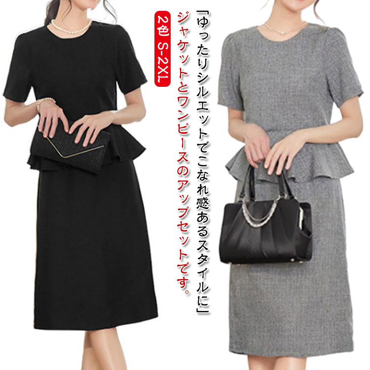 幅広い年代の方におすすめです、イベントなどの場面に最適 ワンピーススーツ 2点セット スーツ ジャケット レディース 長袖 半袖 ワンピース