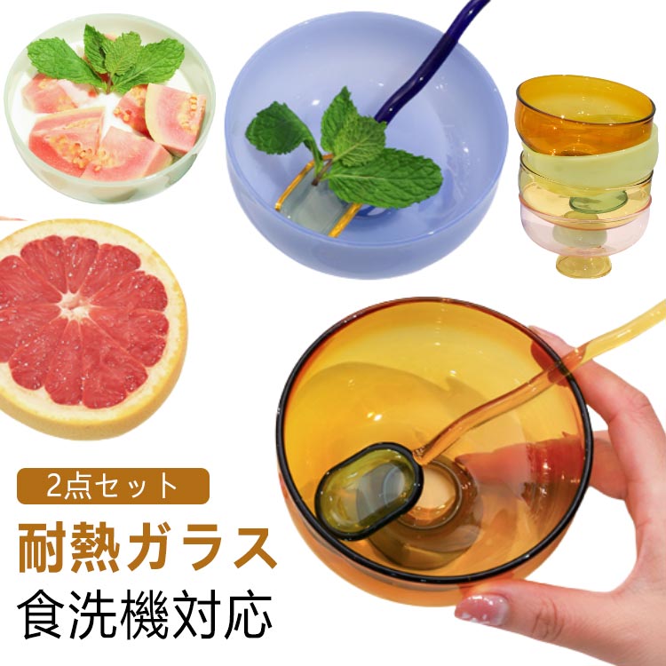 デザートボウル 耐熱 2点セット 耐熱ガラス 耐冷 パフェグラス 小鉢 電子レンジ対応 アイスカップ デザートグラス 食洗機対応 グラス デザートカップ おしゃれ カップ 脚付き ボ 食器