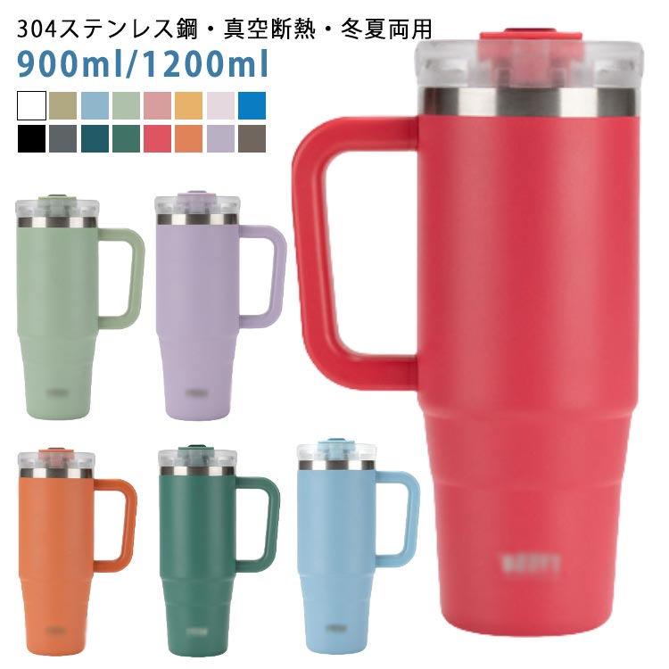 保冷 持ち運び おしゃれ ストロー付きタンブラー タンブラー 保温 蓋付き 広口 直飲み 取っ手 2way 1.2リットル スポーツボトル 大容量 スポーツジャグ こぼれない 水筒 ストロー