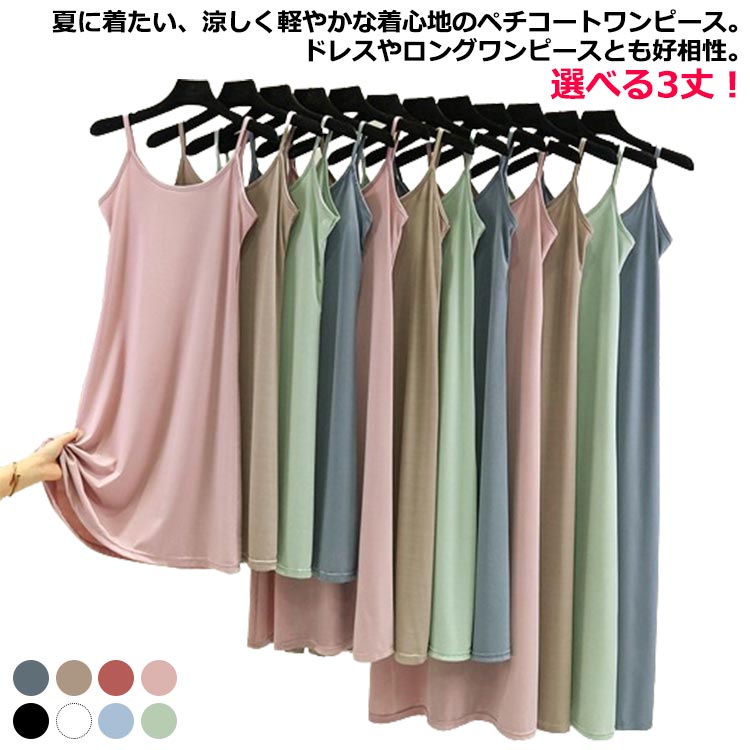 XL ワンピース 2点セット ペチコート 選べる着丈 接触冷感 ロング 夏 ノースリーブ 大人 インナーワンピース キャミソールワンピース ロング丈 ショート丈 ルームウェア L 透けない カジュアル