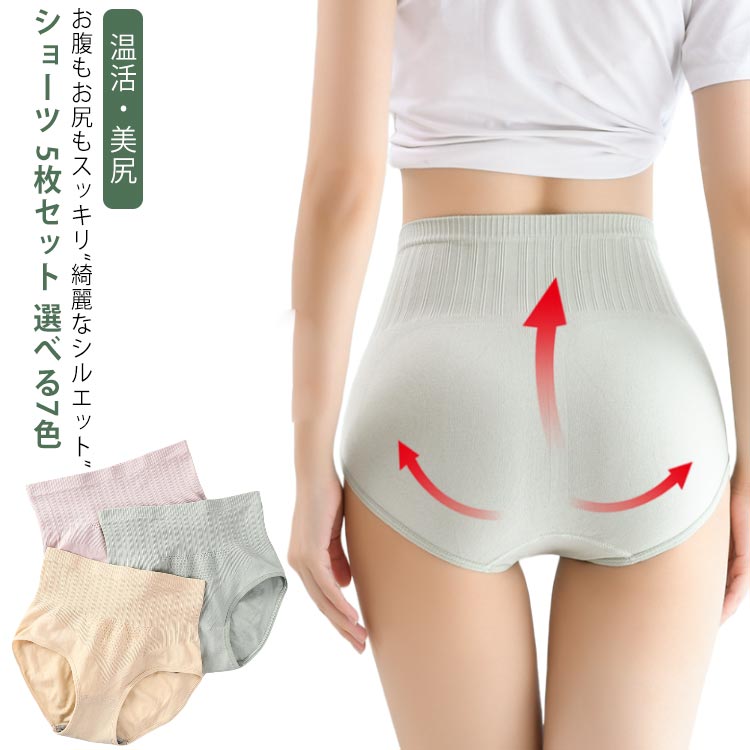 冷えケア インナー ショーツ レディース 5枚セット 温活ショーツ 無縫製 補正インナー ヒップアップ ストレッチ 産後 美尻効果 骨盤ケア 深め 深履き 食い込まない 締め付け シームレス