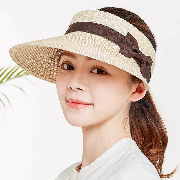 麦わら帽子 レディース サンバイザー ハット 春夏 カット 日除け 紫外線対策 折りたたみ つば広 自転車 旅行 母の日 敬老の日 ギフト プレゼント