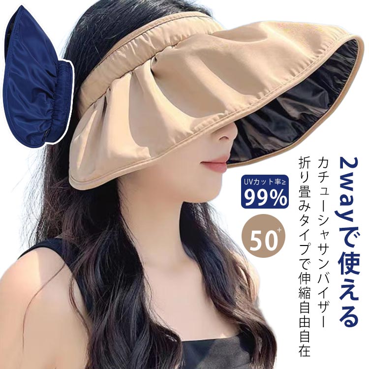 帽子 2way 折りたたみ レディース uvカット サンバイザー 春夏 カチューシャ 自転車 UPF50+ 飛ばない uv 紫外線対策 蒸れない シェル型 ゴルフ スポーツ 外出用 ハット テニス