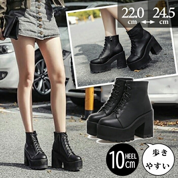 厚底ヒールで美脚効果&歩きやすさを両立、どんなコーデにも合わせやすい洗練されたブラックデザイン、季節問わず活躍する万能ブーツ
